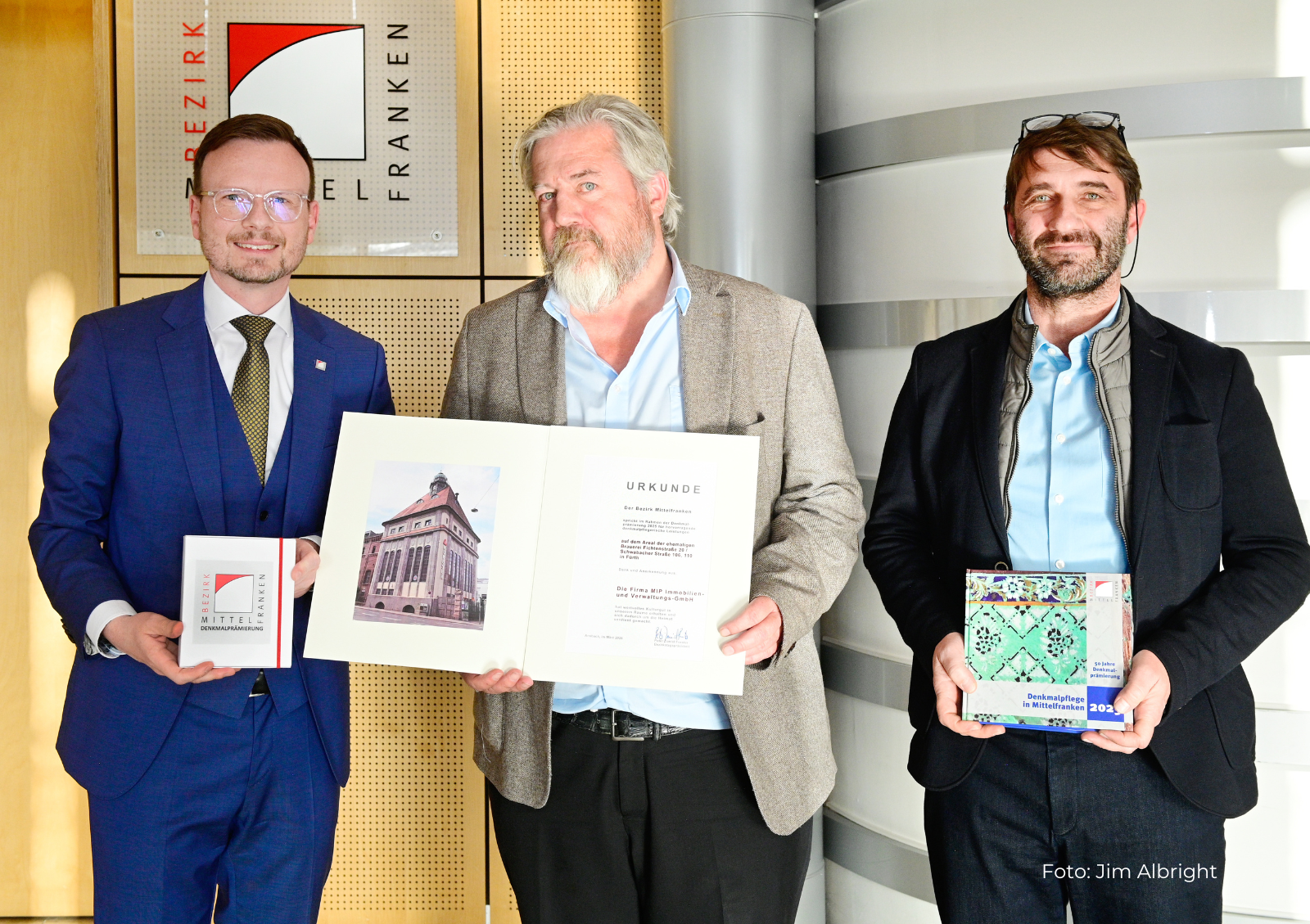 MIP Immobilien wurde im Rahmen der Denkmalprämierung des Bezirks Mittelfranken 2025 für die Revitalisierung der Malzböden in Fürth ausgezeichnet. Die feierliche Verleihung der Urkunde fand am 06. März 2026 im Bezirksrathaus in Ansbach statt, im Kontext des 50-jährigen Jubiläums der Denkmalprämierung.
